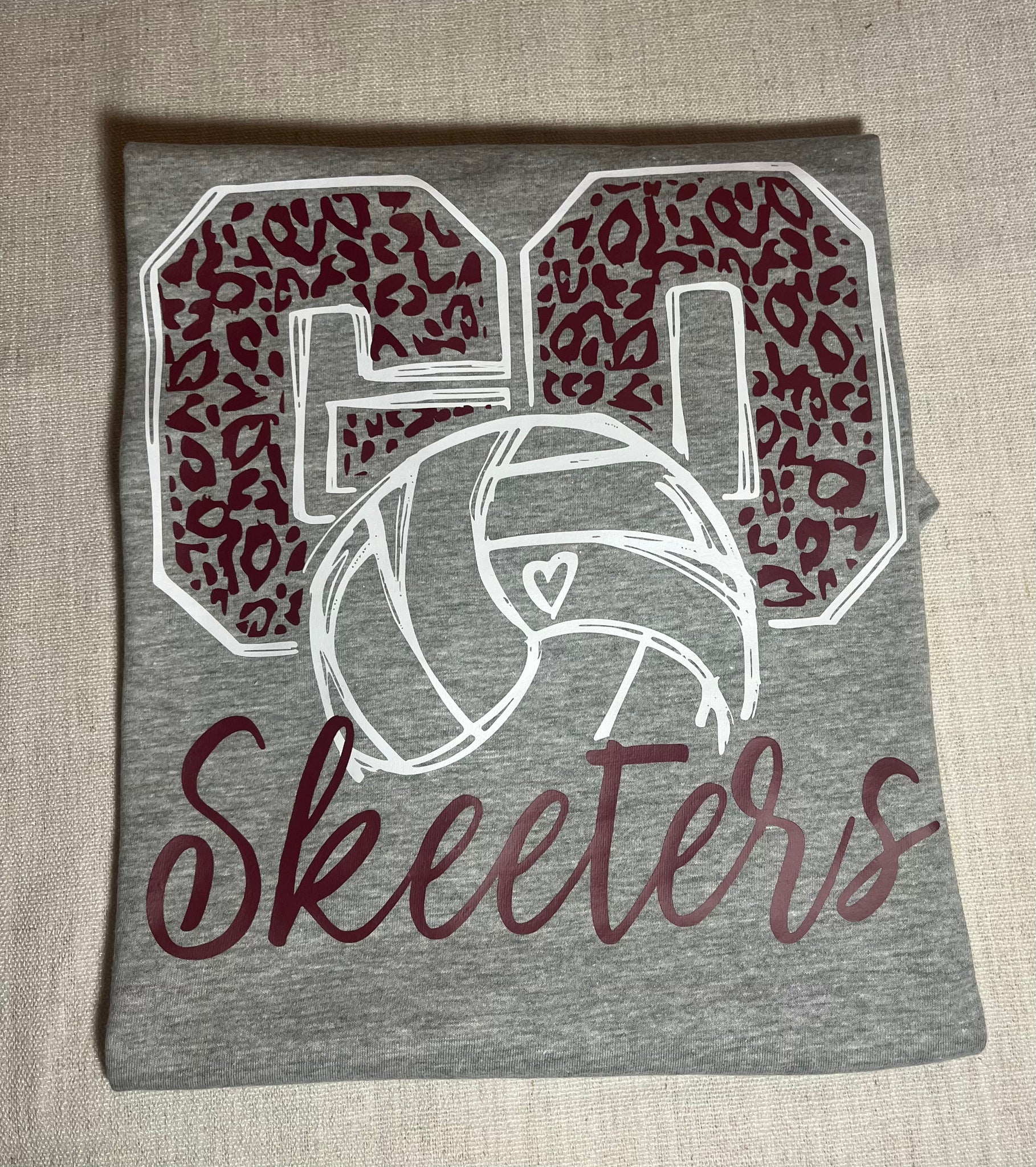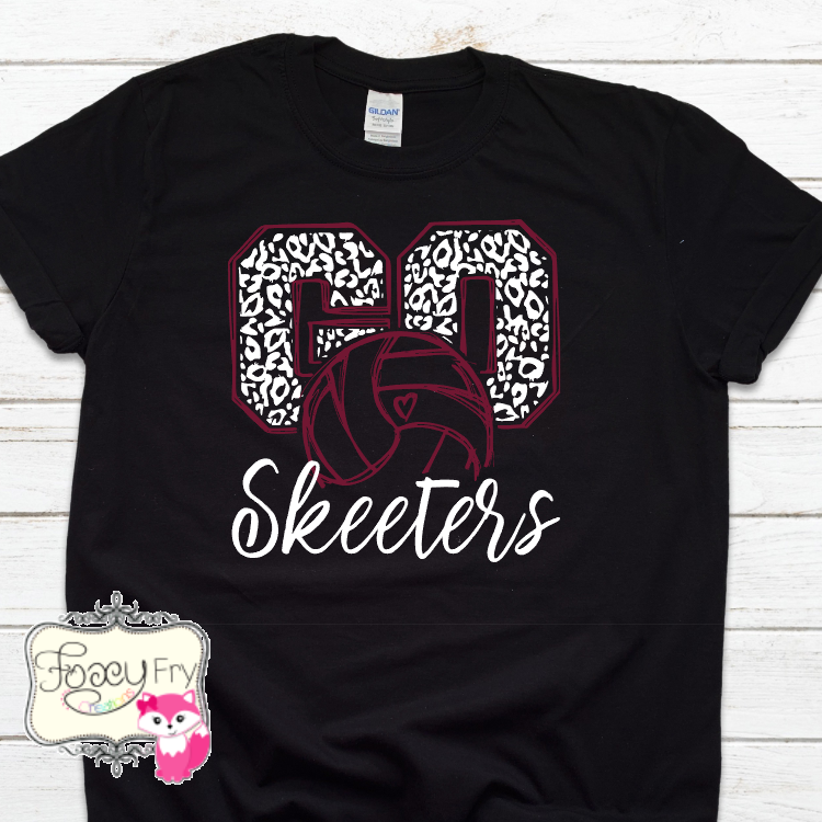 This mascot volleyball shirt is available in a tee shirt, long sleeve shirt, crew sweatshirt or hooded sweatshirt. Colors & mascot can be changed to represent your school or team. Let us know what your color combination is.